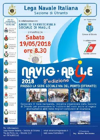 Ritorna anche quest'anno "Navig.Abile", manifestazione giunta all'ottava edizione a cura della Lega Navale Italiana - sezione di Otranto, con il patrocinio del Comune di Otranto e in collaborazione con l'Ambito Territoriale Sociale di Maglie e la Guardia Costiera.