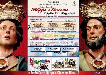 La festa liturgica dei Santi Filippo e Giacomo, nel passato, si celebrava il primo maggio, fu poi spostata all'undici maggio ed oggi si celebra il tre maggio, ma i cittadini di Diso, imperterriti, hanno continuato a festeggiare i santi protettori il primo maggio di ogni anno, fatto questo che oltre a sottolineare l'orgoglio nella venerazione dei santi ne ha rafforzato la fede e la tradizione. Nemmeno nel lontano 1889 quando la giornata del 1° maggio, con delibera di un congresso internazionale, fu proclamata "festa del lavoro", i cittadini di Diso hanno cambiato la loro tradizione e pertanto il 1° maggio a Diso e' essenzialmente la festa dei Santi Filippo e Giacomo.